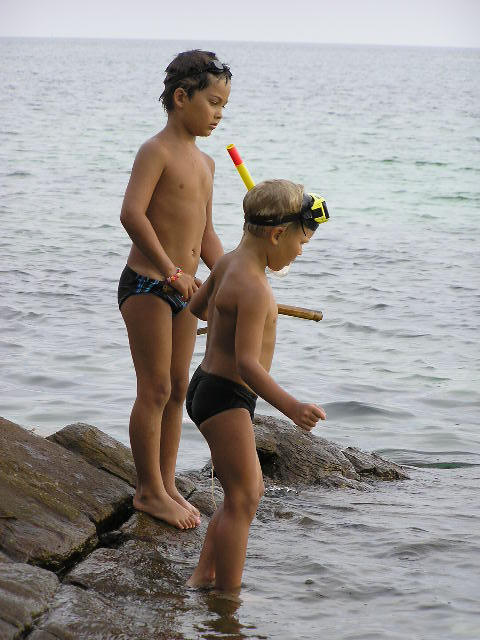 Me puolestamme snorklailimme kylliksemme, Jaankin taisi olla vedessä koko ajan, ihme ettei iho alkanut jo muuttua suomuiseksi. Näkyvyys oli todella erinomainen, vesi oli niin kirkasta ja korallit niin pinnassa, että laskuveden aikana piti uida "vatsa sisässä" ettei olisi koskettanut koralleja. Myös eksoottisia kaloja näkyi isompina parvina sekä yksittäin. Pojatkin snorklailevat jo innokkaasti. Seurasimme myös innolla kuin hotellimme pojat kalastivat vedessä snorklaillen ja harppuunalla kaloja pyydästäen. He vetivät vedestä melkoisia saaliita, joita sitten illalla tarjoilivat meille hotellin ravintolassa. Välillä he heittivät verkkoa veteen ja silloin saalista tuli kerralla isokin määrä, hyvään kalaparveen osuessaan. Näytti siltä kun olisivat tehneet tätä pari kertaa aiemminkin.